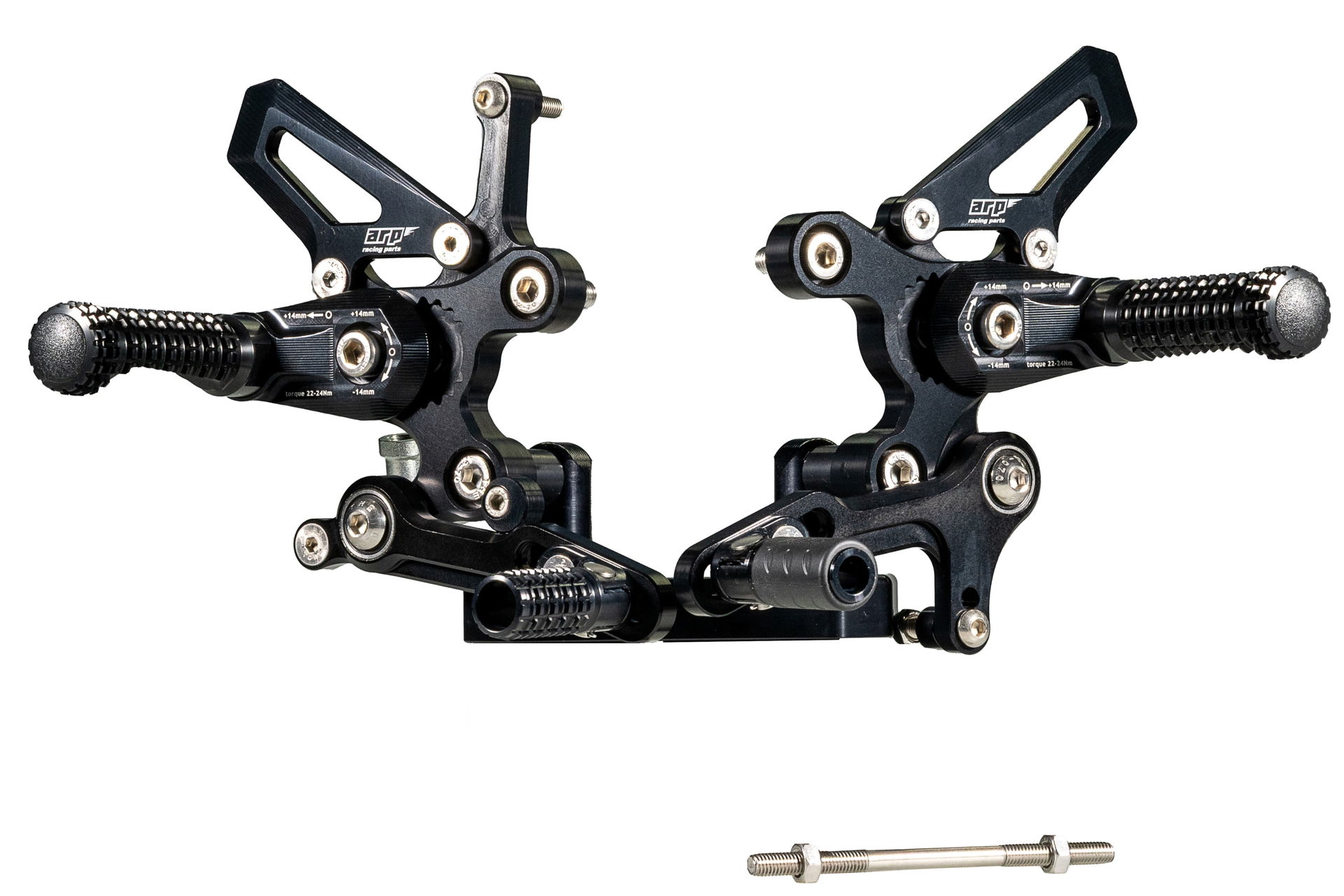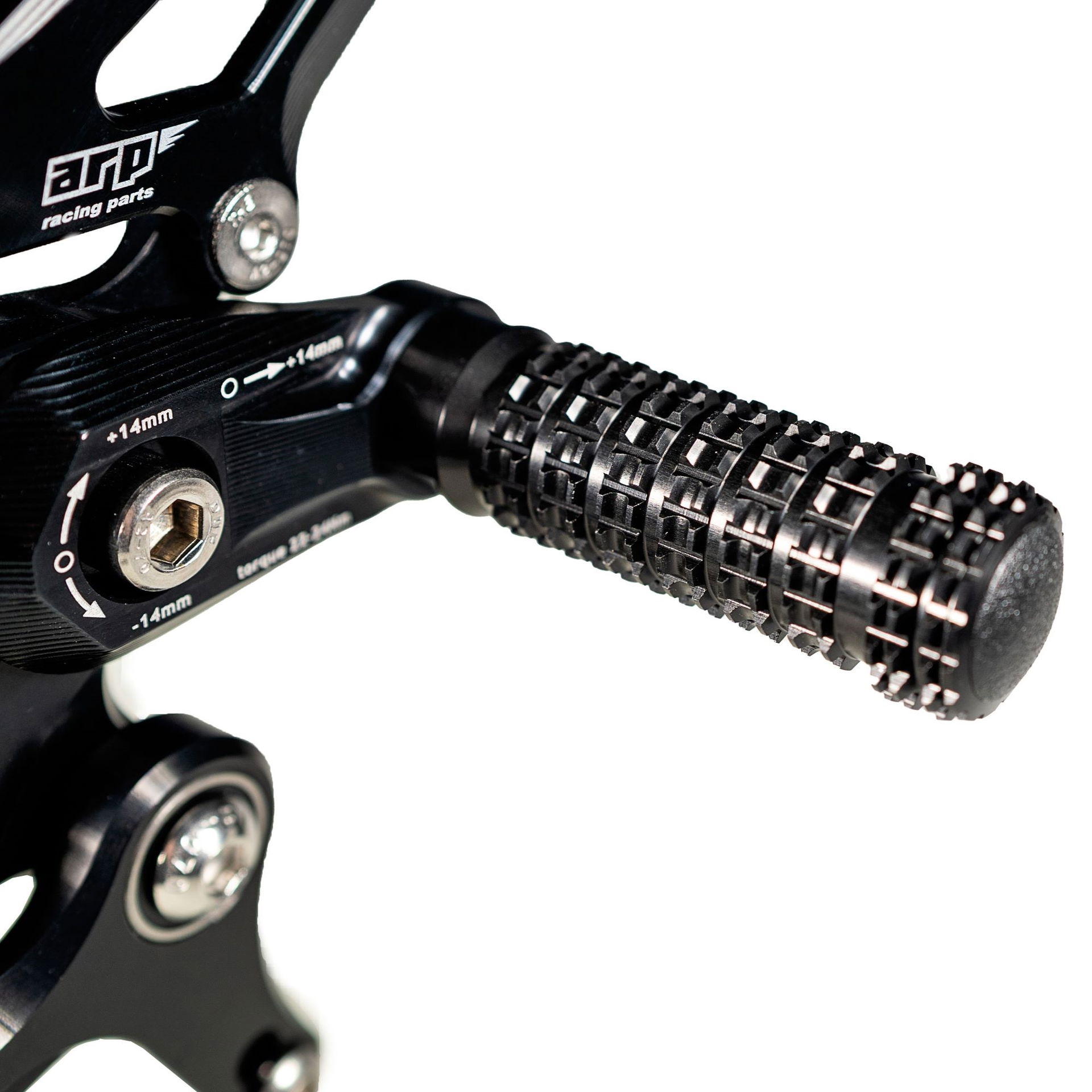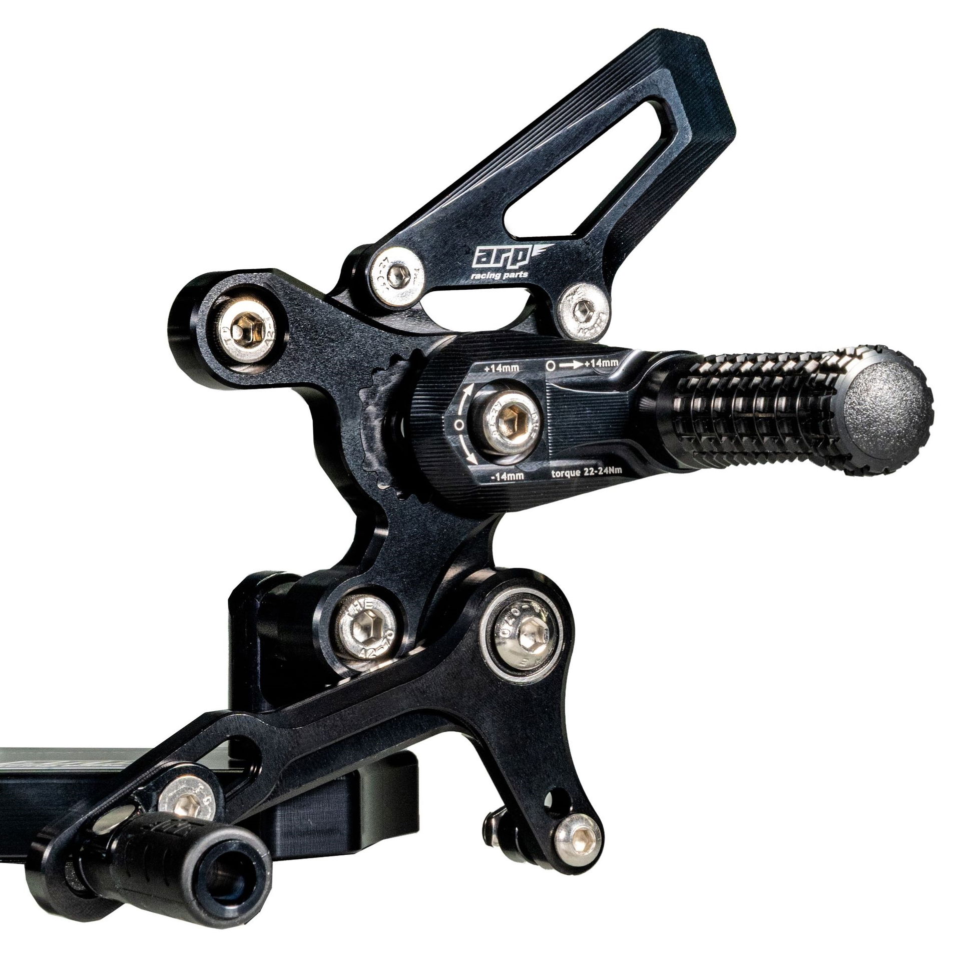 Design stupaček je výsledkem dlouhodobého testování ve WorldSBK. Frézovaný vzor zoubků zajišťuje maximální grip i za mokra. Při nehodě stupačky nejen že chrání kryty motoru, převodovky a hlavní rám, ale jejich konstrukce umožňuje kontrolované odlomení špičky, zatímco zbytek funguje jako slider. Výměna poškozené stupačky je pak otázkou pouhého povolení jednoho šroubu.