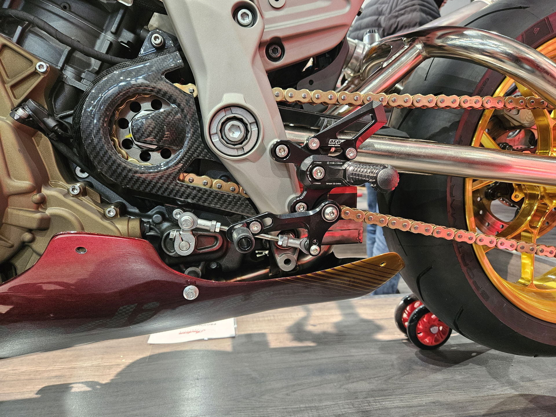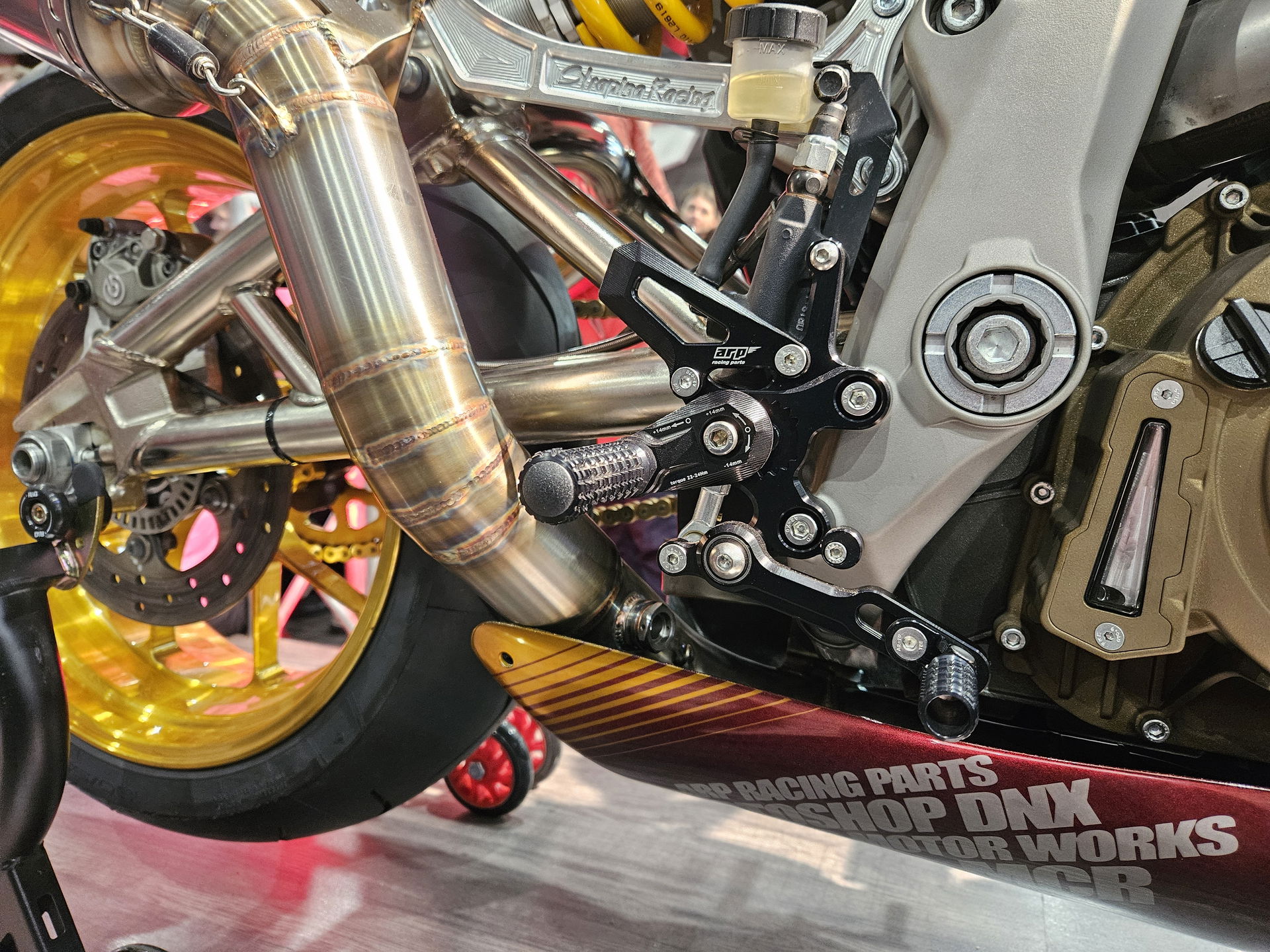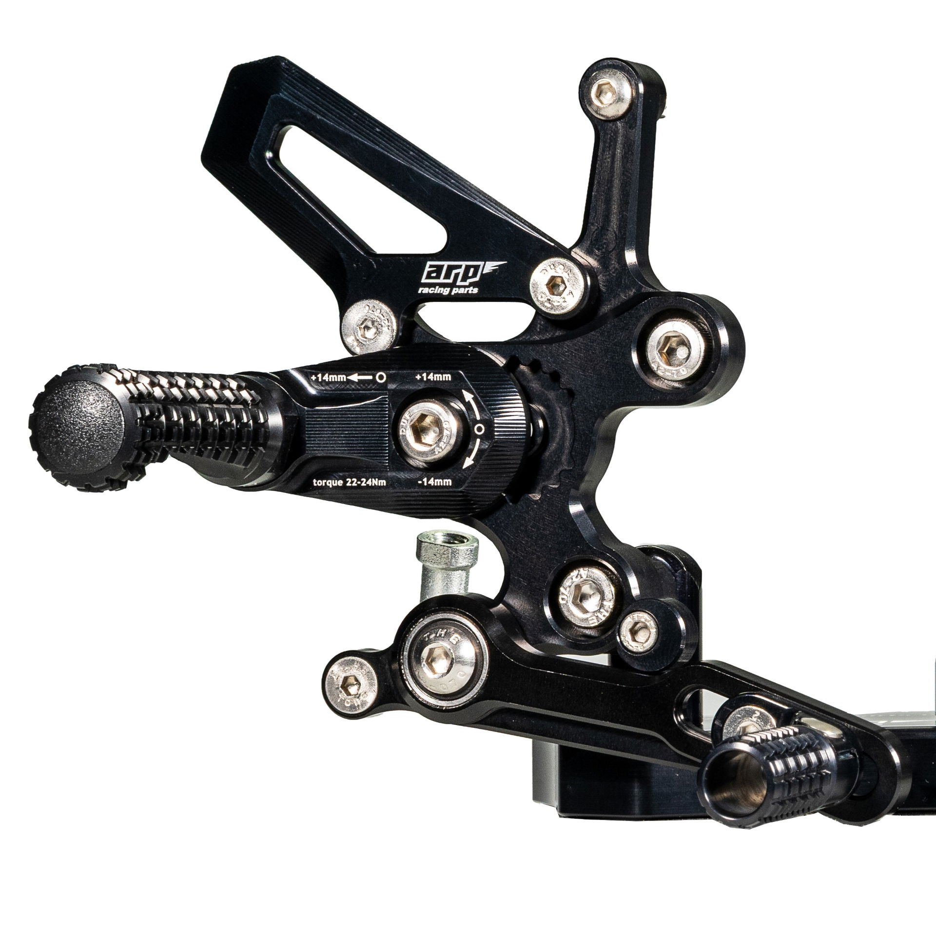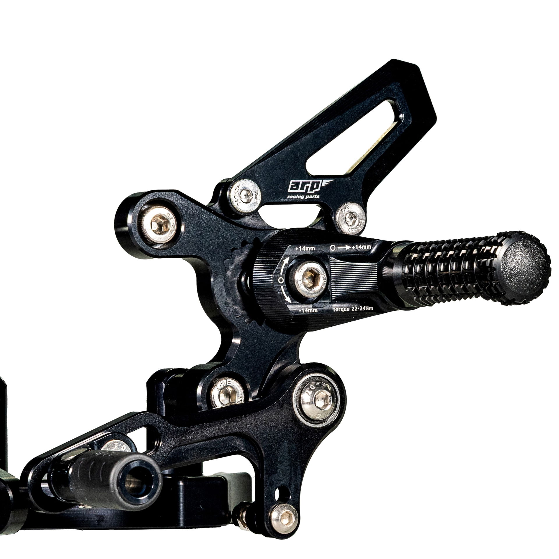Design stupaček je výsledkem dlouhodobého testování ve WorldSBK. Frézovaný vzor zoubků zajišťuje maximální grip i za mokra. Při nehodě stupačky nejen že chrání kryty motoru, převodovky a hlavní rám, ale jejich konstrukce umožňuje kontrolované odlomení špičky, zatímco zbytek funguje jako slider. Výměna poškozené stupačky je pak otázkou pouhého povolení jednoho šroubu.