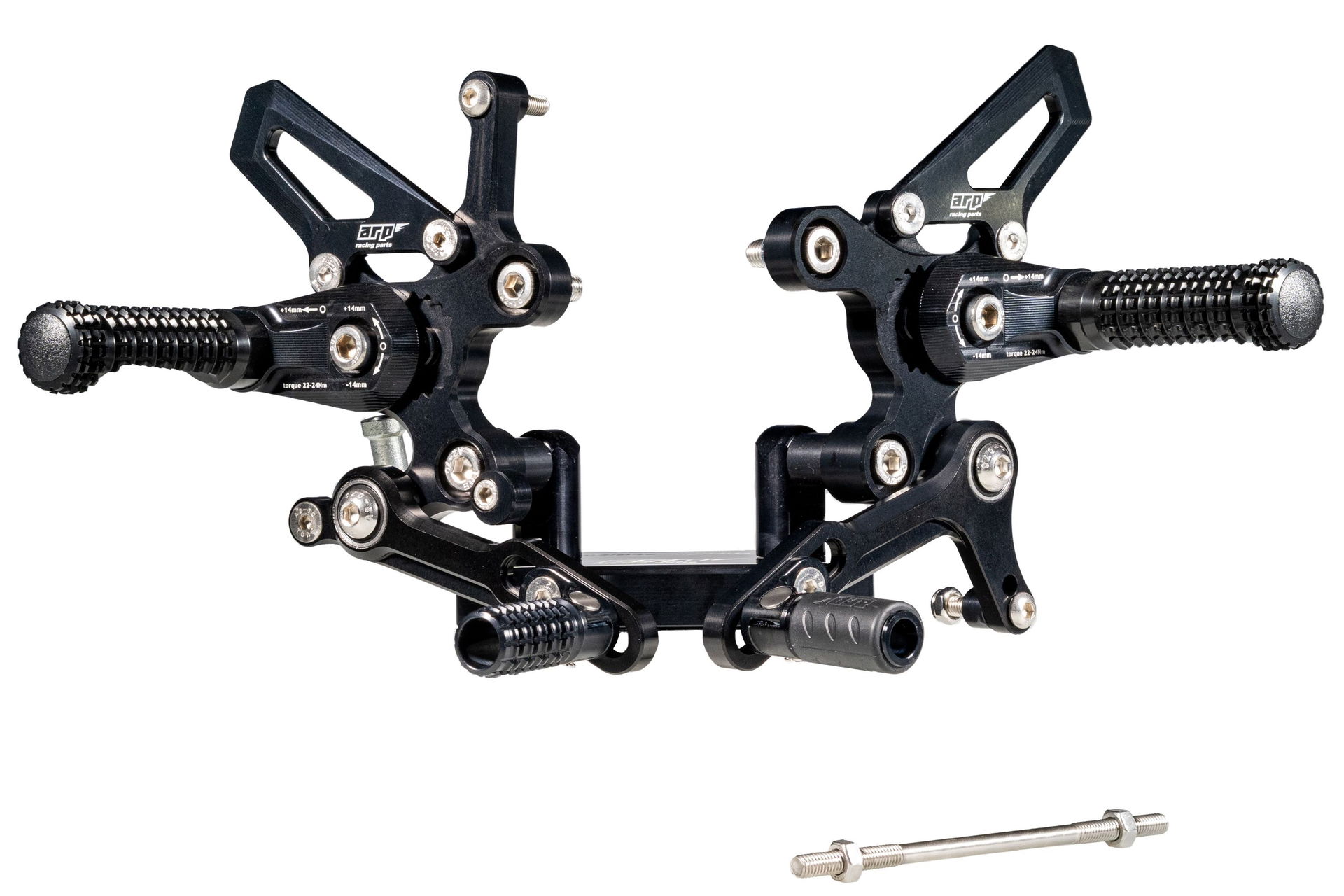Stupačkové sety navrhujeme s důrazem na čtyři klíčové aspekty: funkčnost, odolnost, design a jednoduchost, přičemž největší důraz klademe na funkčnost. Naše sety poskytují jezdci vynikající zpětnou vazbu, která je zásadní pro maximální kontrolu nad motocyklem. Jsou vyrobeny z hliníkové slitiny EN AW – 7075 T6, která kombinuje výjimečnou pevnost a tuhost s nízkou hmotností. Hlavní díly jsou opatřeny tvrdým černým eloxem, který je chrání před poškrábáním a nepříznivými vlivy prostředí. Oba pedály jsou uloženy na dvou ložiskách, což zajišťuje plynulý a přesný chod bez jakékoli vůle.