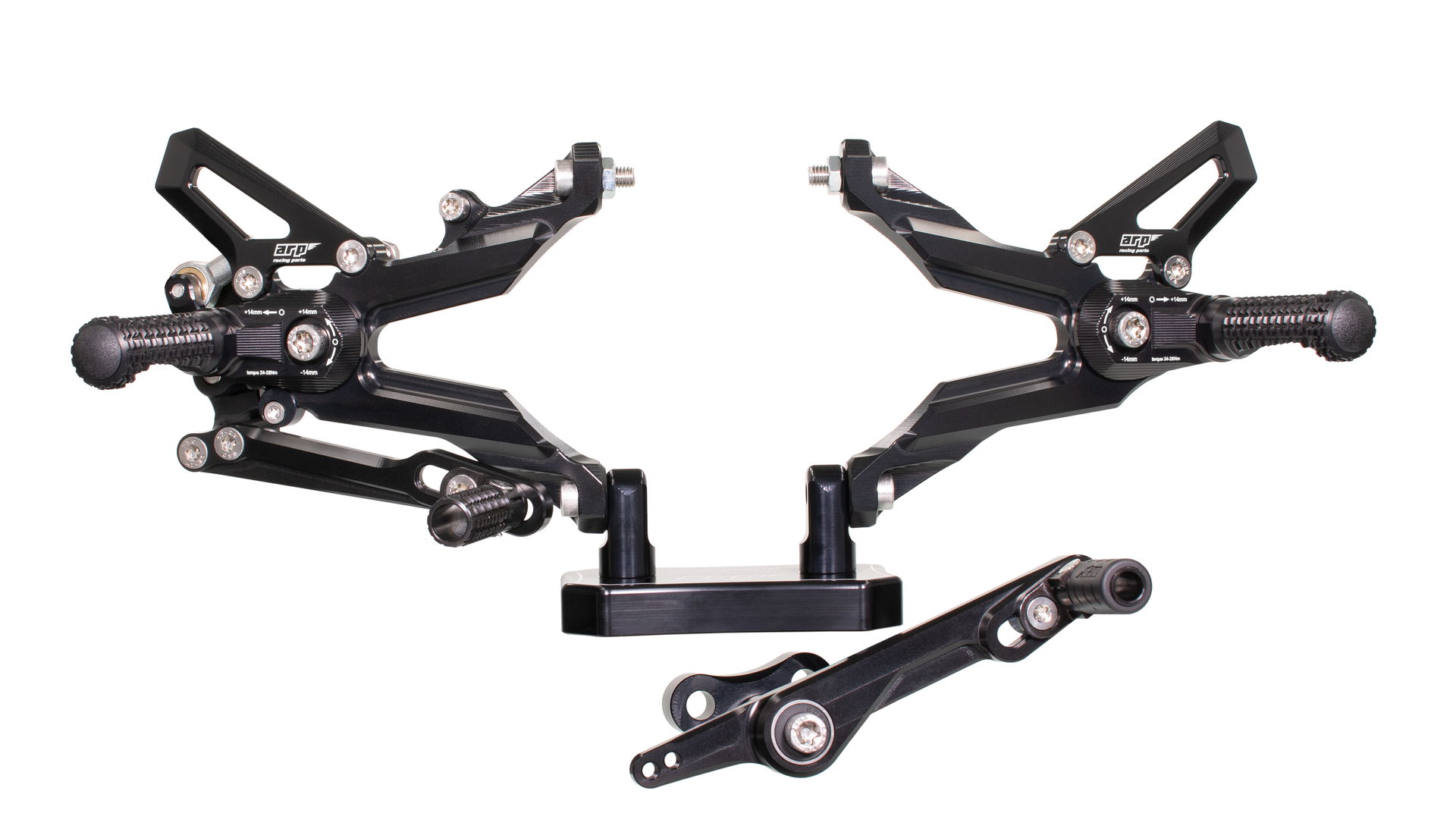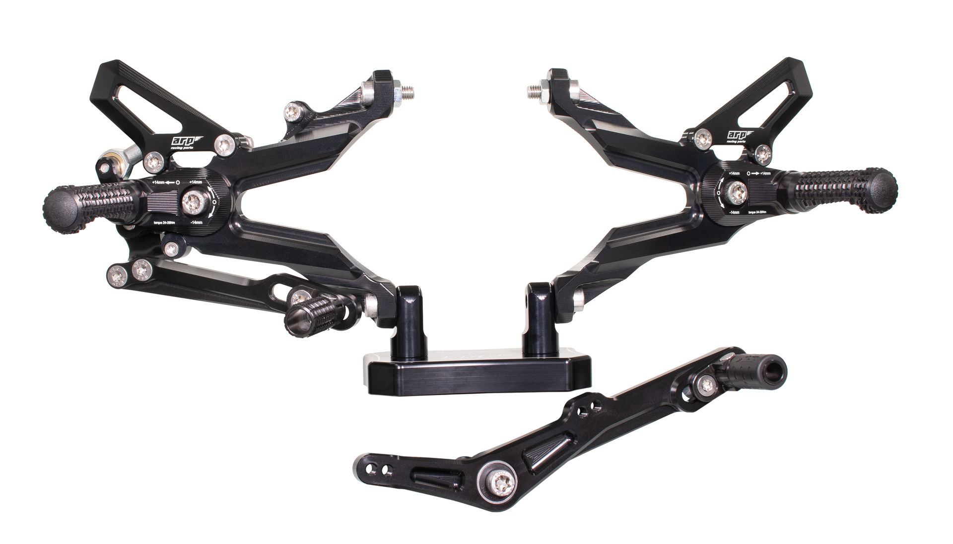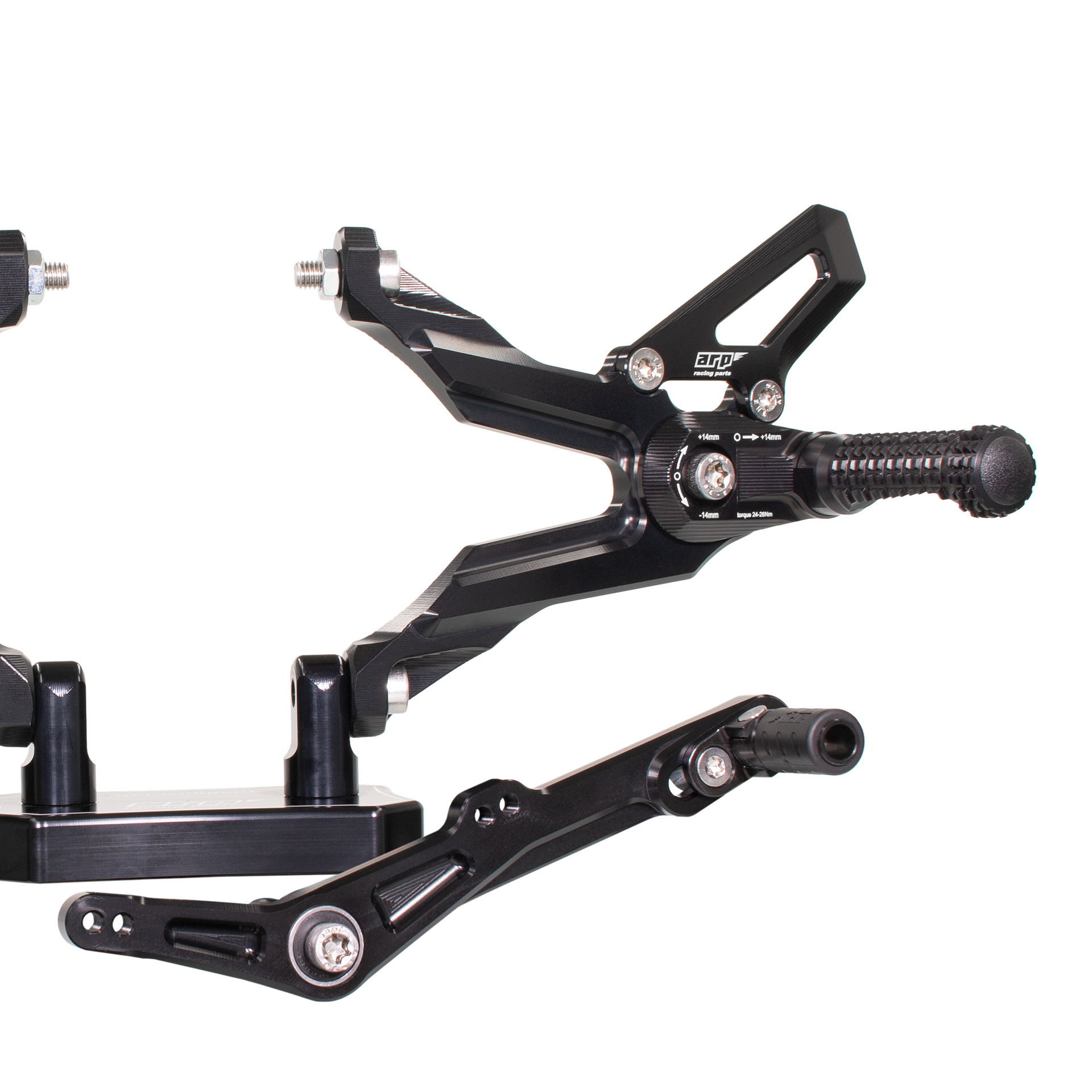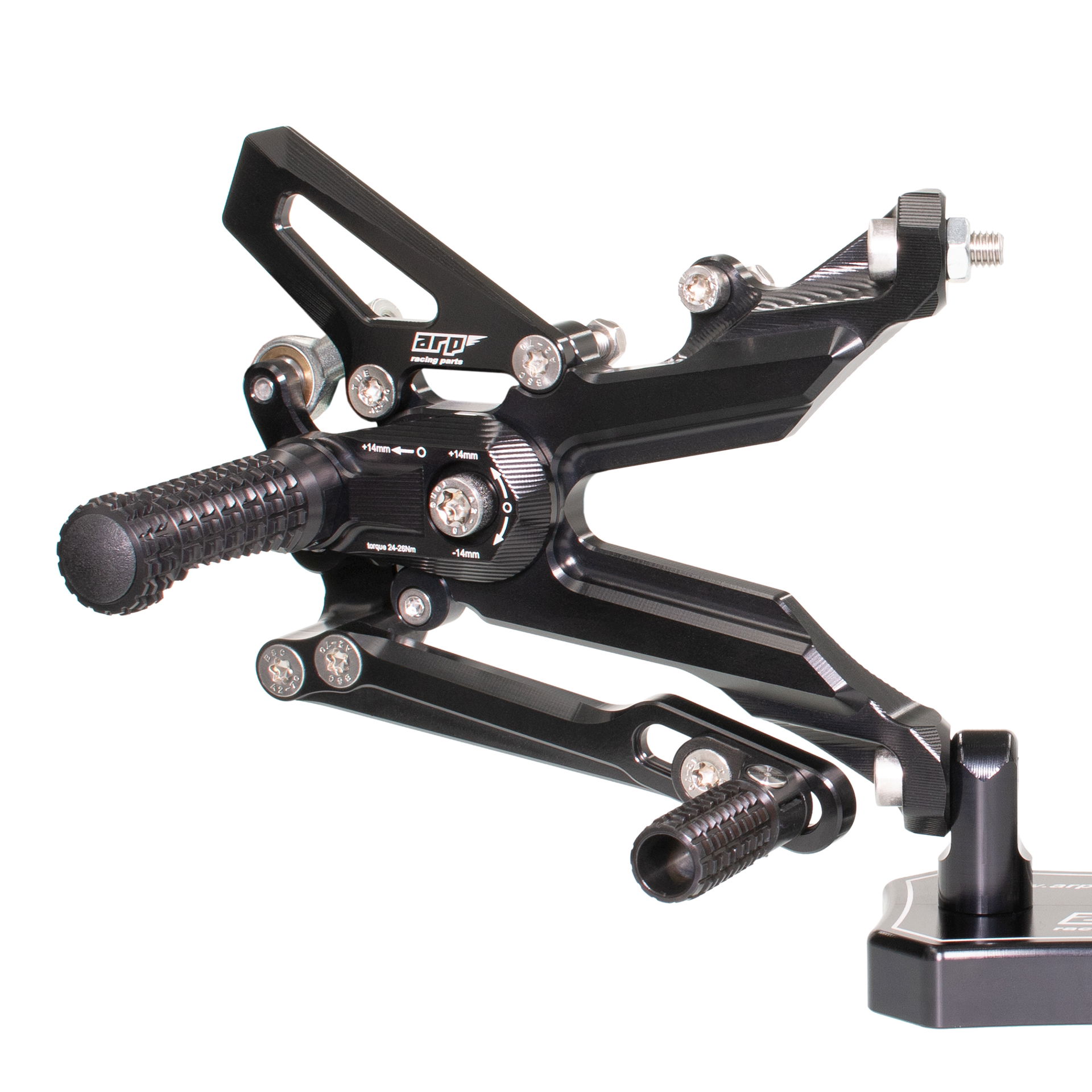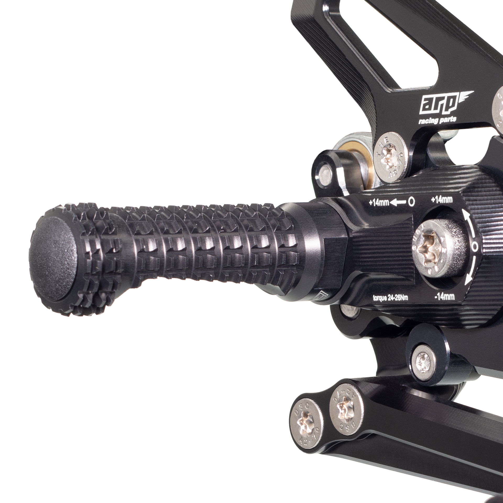 Design stupaček je výsledkem dlouhodobého testování ve WorldSBK. Frézovaný vzor zoubků zajišťuje maximální grip i za mokra. Při nehodě stupačky nejen že chrání kryty motoru, převodovky a hlavní rám, ale jejich konstrukce umožňuje kontrolované odlomení špičky, zatímco zbytek funguje jako slider. Výměna poškozené stupačky je pak otázkou pouhého povolení jednoho šroubu.