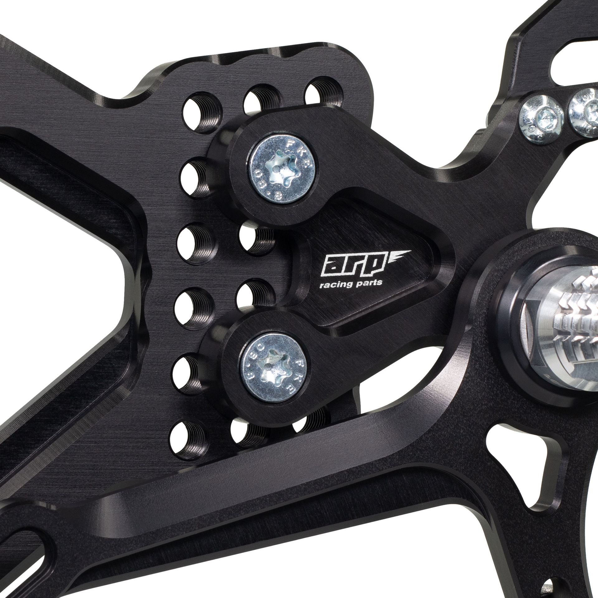 Design stupačky je výsledkem dlouhodobého testování ve WorldSBK. Frézované zoubky zajistí dostatečný grip i za mokra. Při nehodě pomáhají stupačky také chránit kryty motoru, převodovky a hlavní rám motocyklu. Špička stupačky se odlomí a zbytek slouží jako slider. K výměně zlomené stupačky stačí povolit jeden šroub.