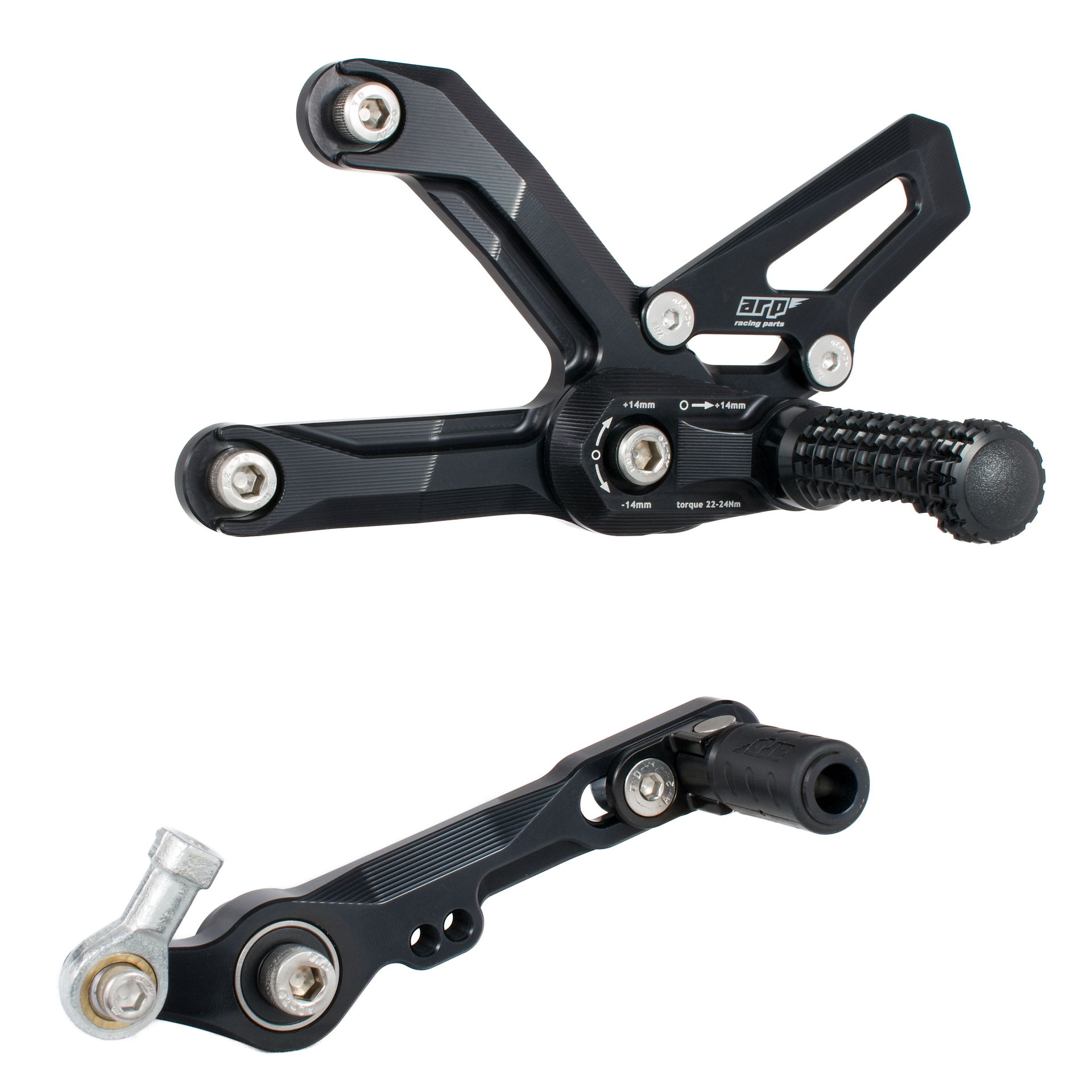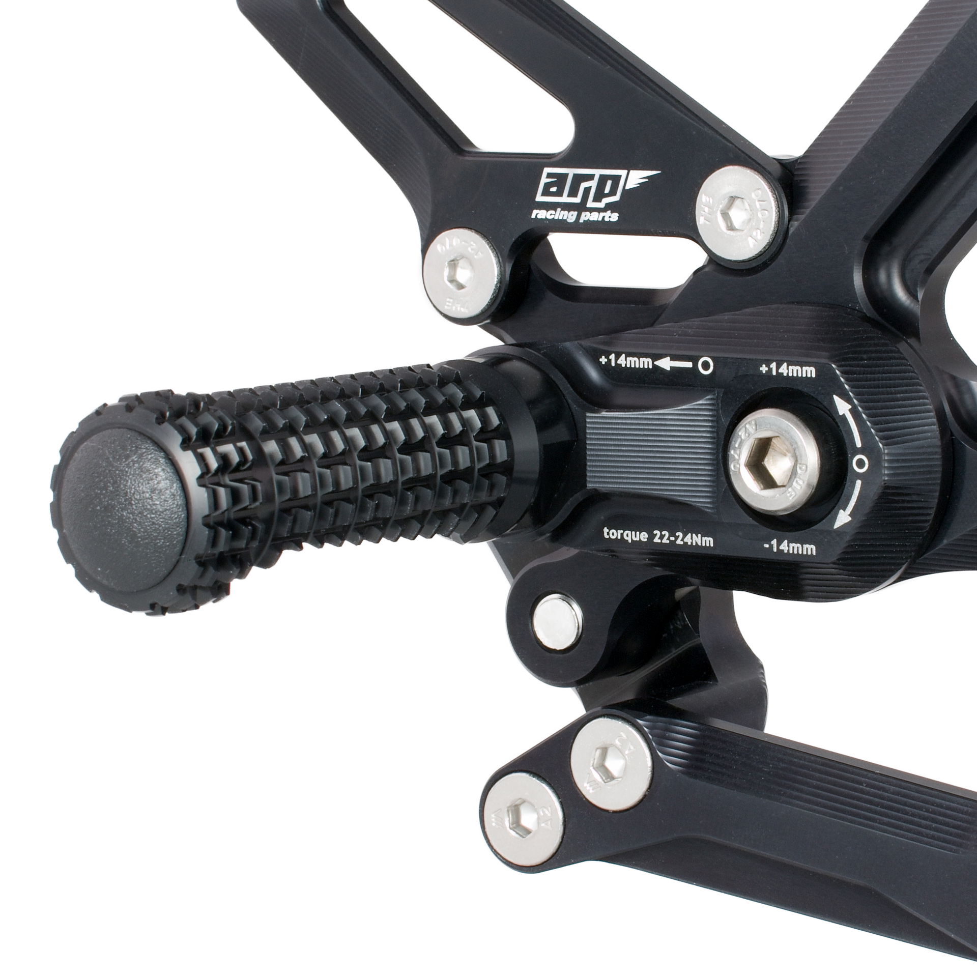 Stupačky byly vyvíjeny a testovány v prostředí WorldSBK a mají protiskluzový zubový profil pro maximální grip — i za mokra. V případě pádu může konstrukce stupačky pomoci snížit poškození tím, že převezme první kontakt; špička stupačky je navržena tak, aby se ulomila a zbytek mohl dále fungovat jako kluzný prvek. Výměna je rychlá — povolíte jeden šroub a stupačku vyměníte.