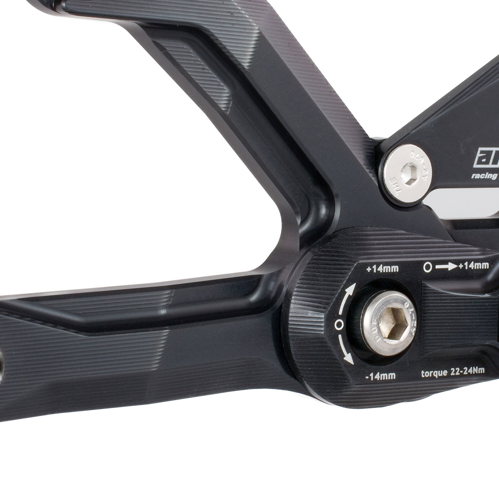 Vyrobeno z frézovaného duralu EN AW-7075 T6, který nabízí výrazně vyšší pevnost a tuhost než sériové (OEM) díly. Hlavní části jsou tvrdě eloxované, což zvyšuje odolnost proti poškrábání i vlivům prostředí.