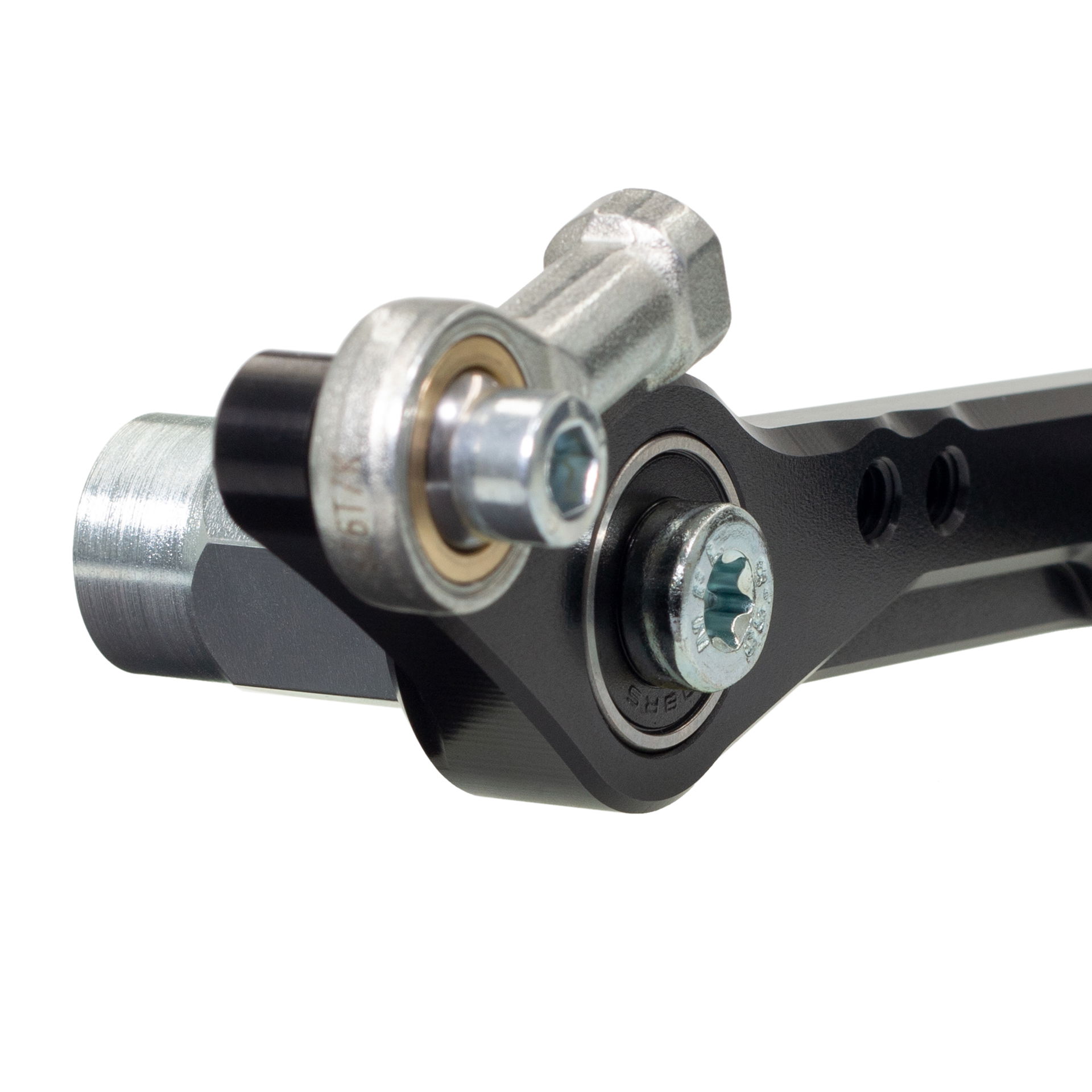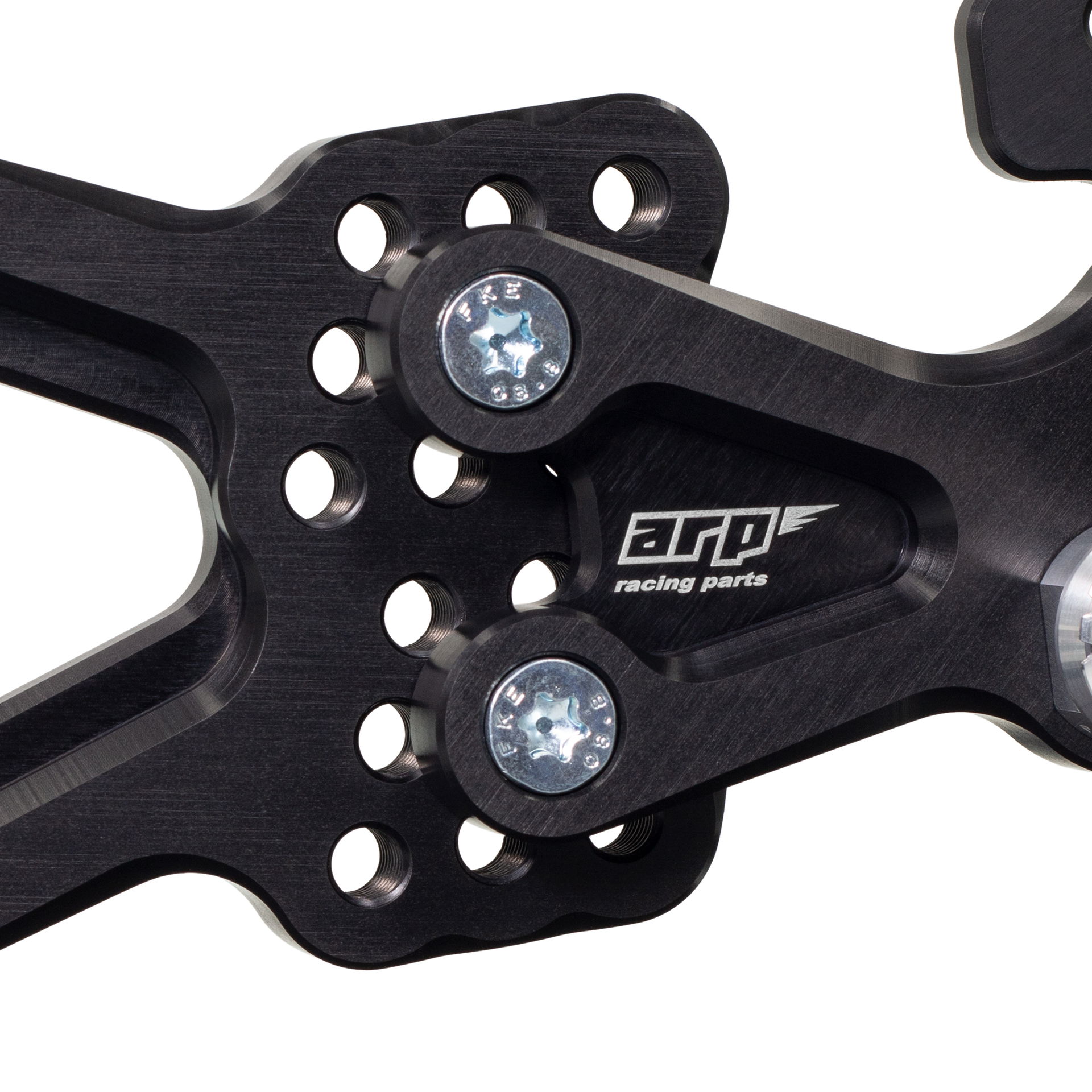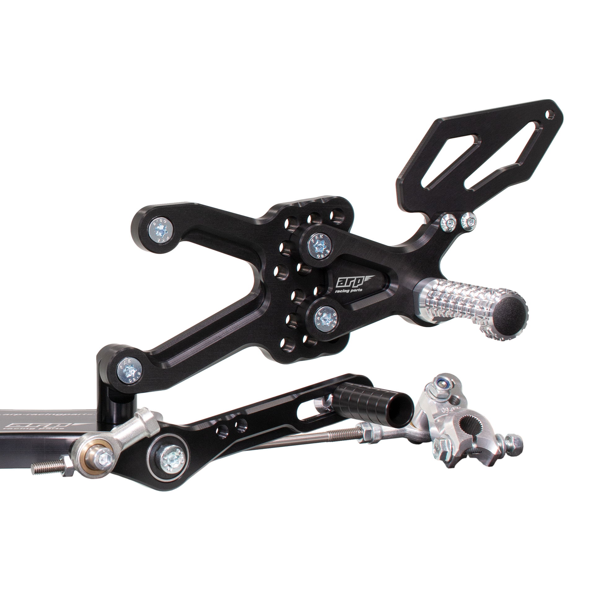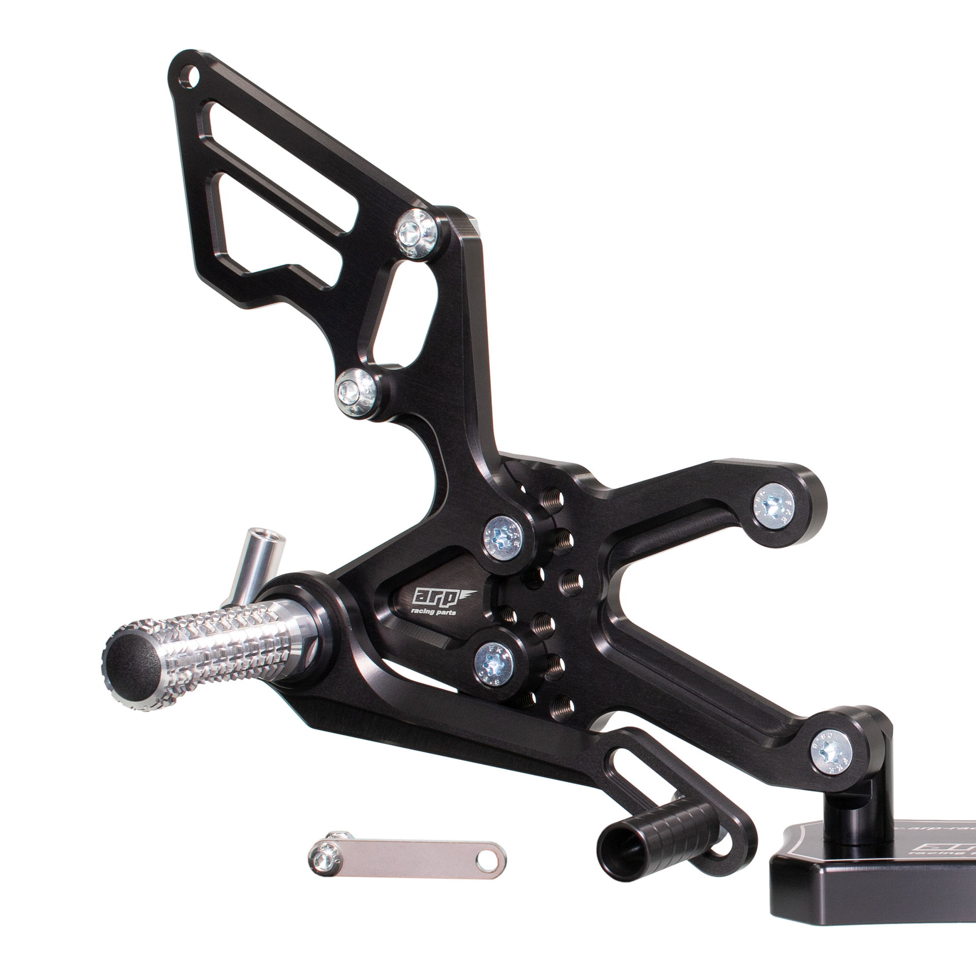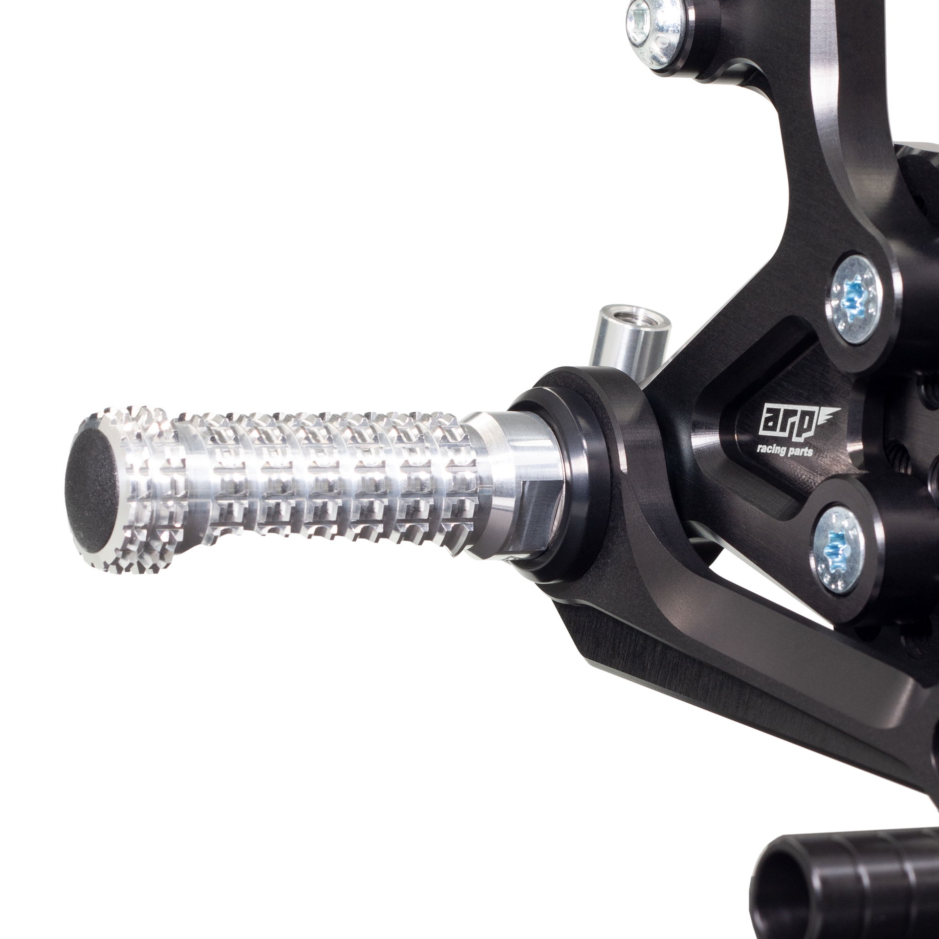We design rear sets with four key areas in mind: functionality, durability, design and simplicity of which the functionality is the most prominent. Our rear sets provide excellent feedback for the rider allowing him to push his bike to the absolute limit. We manufacture our rear sets from aluminium billet, which provides exceptional durability and rigidity compared to the OEM rear set. The main parts' surface is anodized to achieve a hard black finish for additional protection against scratches and environmental influences.