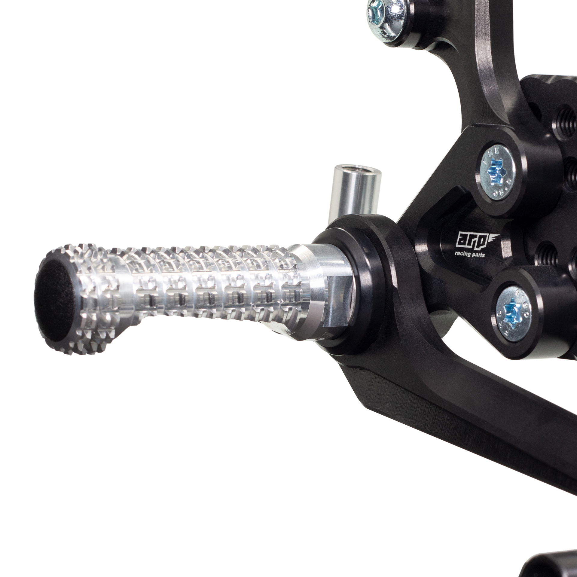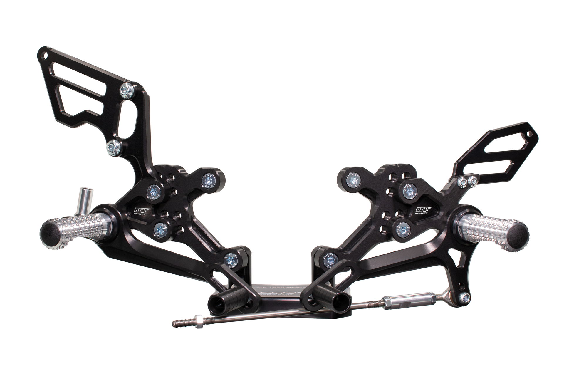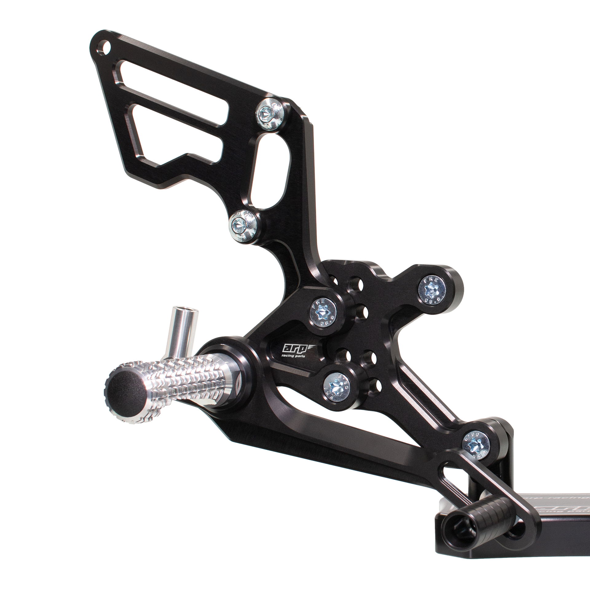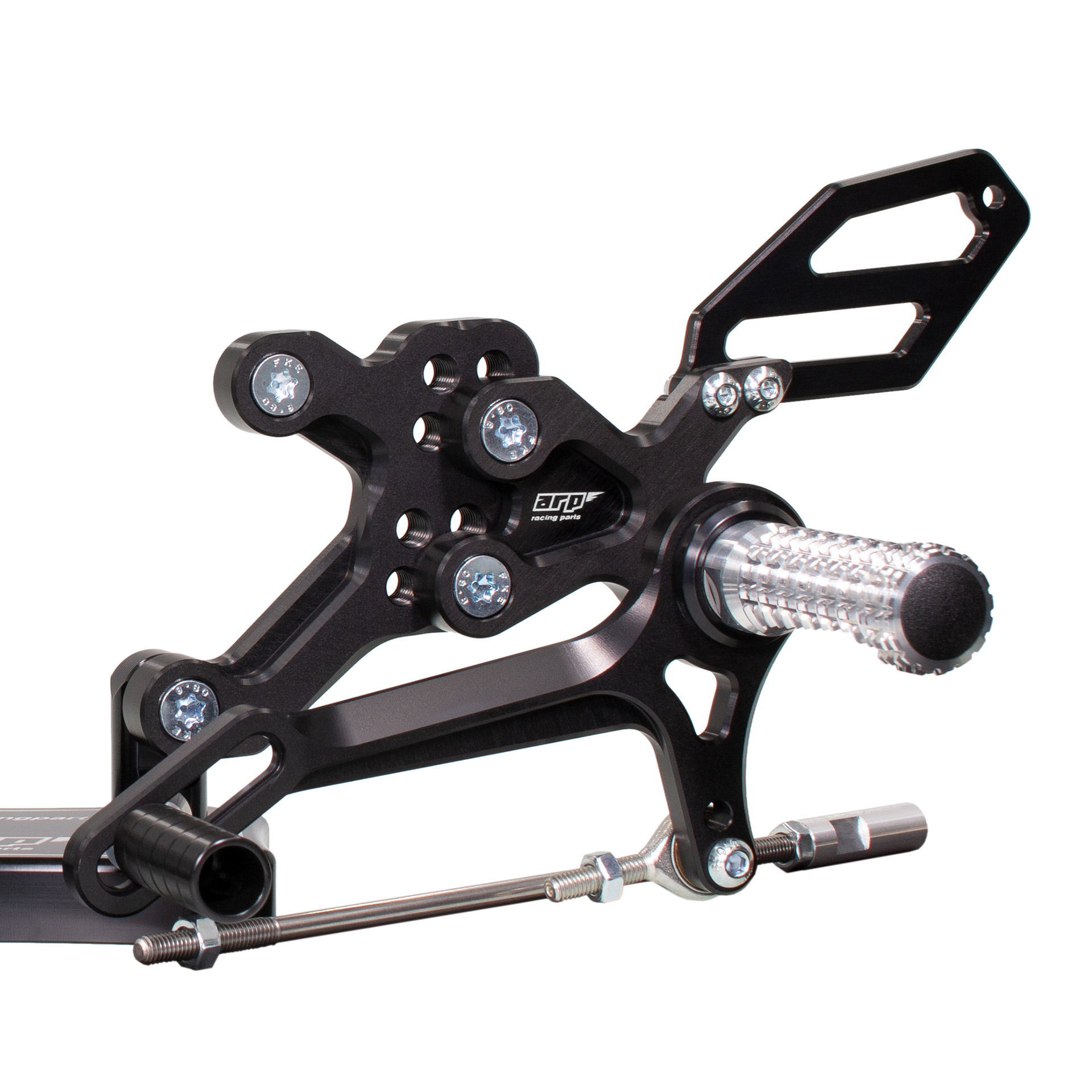 We design rear sets with four key areas in mind: functionality, durability, design and simplicity of which the functionality is the most prominent. Our rear sets provide excellent feedback for the rider allowing him to push his bike to the absolute limit. We manufacture our rear sets from aluminium billet, which provides exceptional durability and rigidity compared to the OEM rear set. The main parts' surface is anodized to achieve a hard black finish for additional protection against scratches and environmental influences.