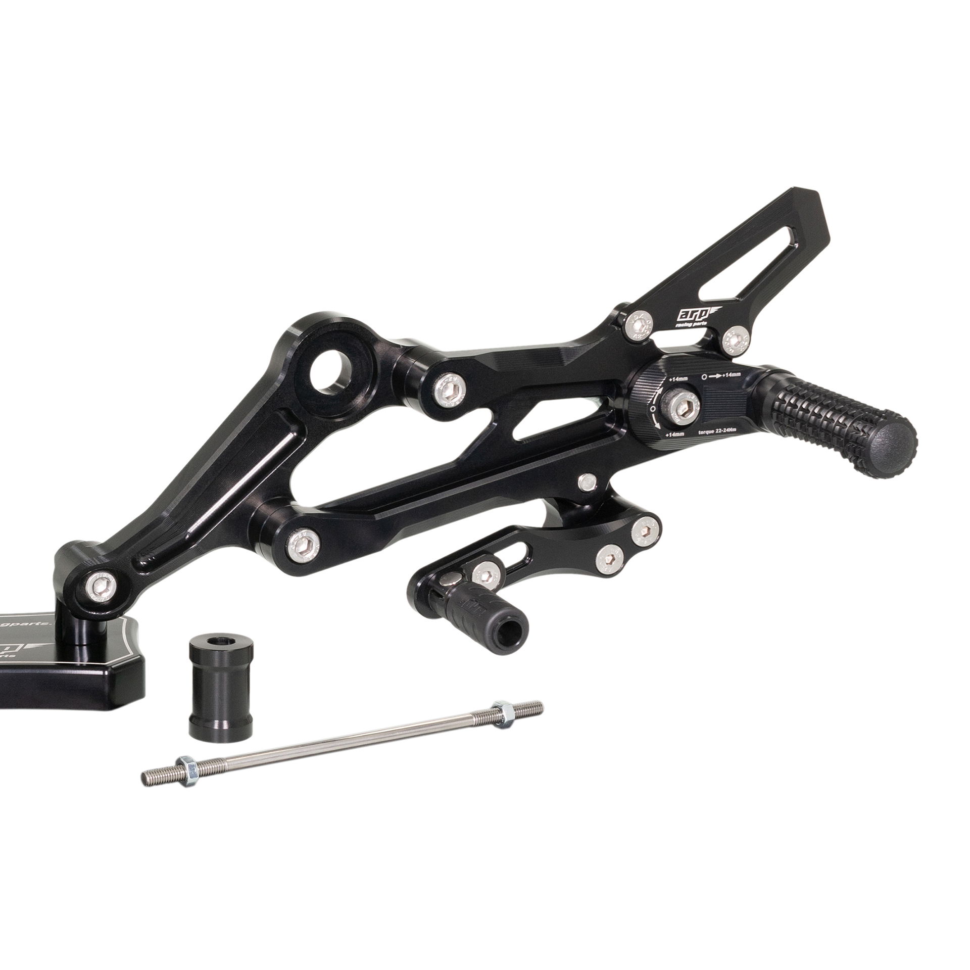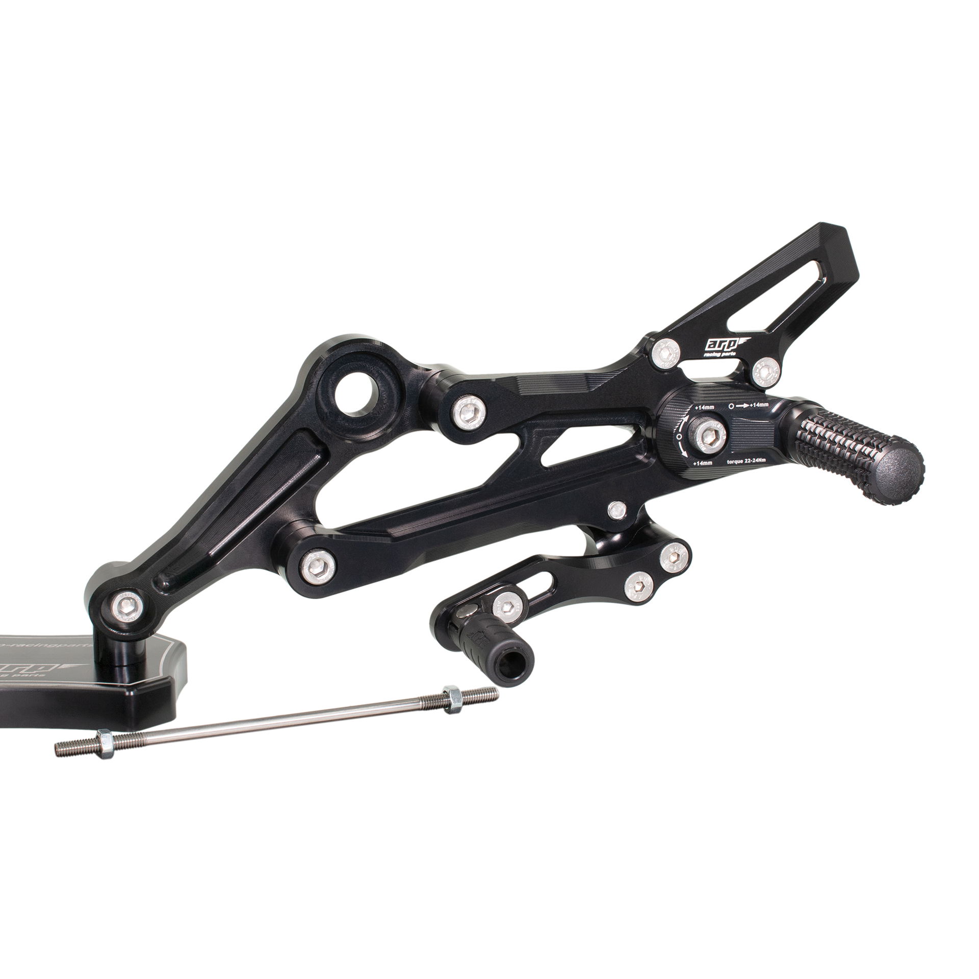 We design our rear sets with four key principles in mind: functionality, durability, design, and simplicity, with functionality being the top priority. Our rear sets provide outstanding feedback, allowing the rider to push their bike to the absolute limit. Manufactured from EN AW – 7075 T6 aluminum billet, they offer significantly greater strength and rigidity compared to OEM components. The main parts are anodized in a hard black finish, providing additional protection against scratches and environmental wear.